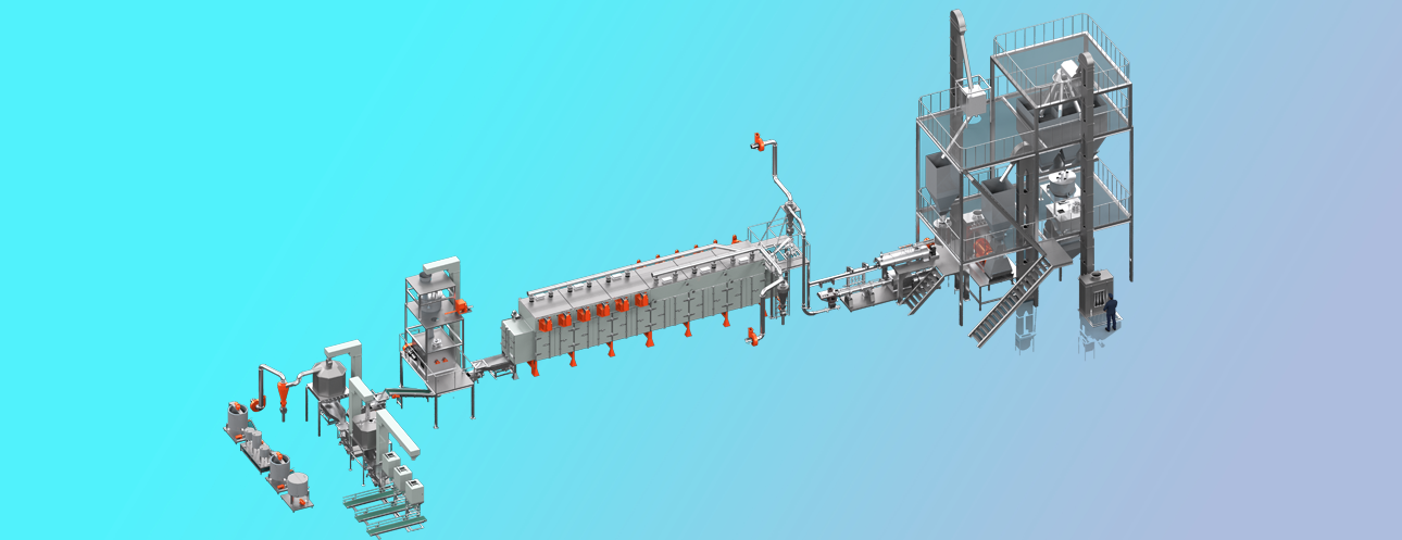 技術方面寵物食品生產線設計自動配料混合粉碎系統、雙螺桿擠壓膨化機、環(huán)流帶式干燥機,真空噴涂機,運行設有自動控制中心。整套設備全部自動運行。降低勞工成本投入,低成本,高產能。